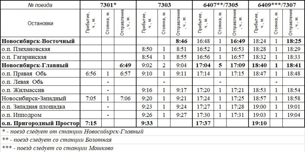 Как сообщили в министерстве транспорта Новосибирской области, первый электропоезд из Новосибирска до станции «Пригородный простор» отправится в 17.09 по местному времени. Обратный рейс в столицу Сибири из «просторов» назначен на 17.53. Далее все электрички будут ехать согласно расписанию.