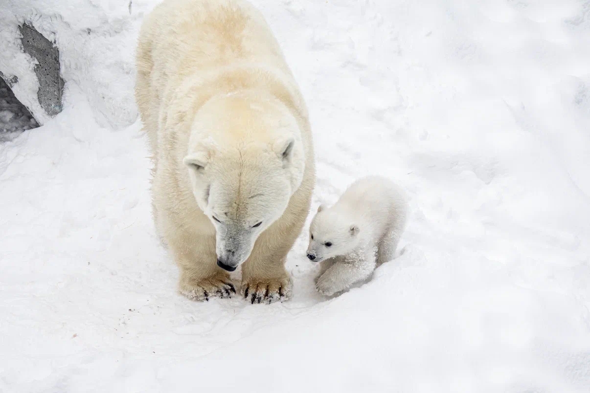 При рождении детёныш весил всего около 600 граммов и был совершенно беспомощным. Всё это время мать не оставляла его ни на минуту. Как рассказали в зоопарке, Герда впервые вышла из логова за едой только 26 февраля – то есть провела с потомством взаперти более двух месяцев. Такое поведение характерно для медведицы: со всеми предыдущими детёнышами она вела себя так же.